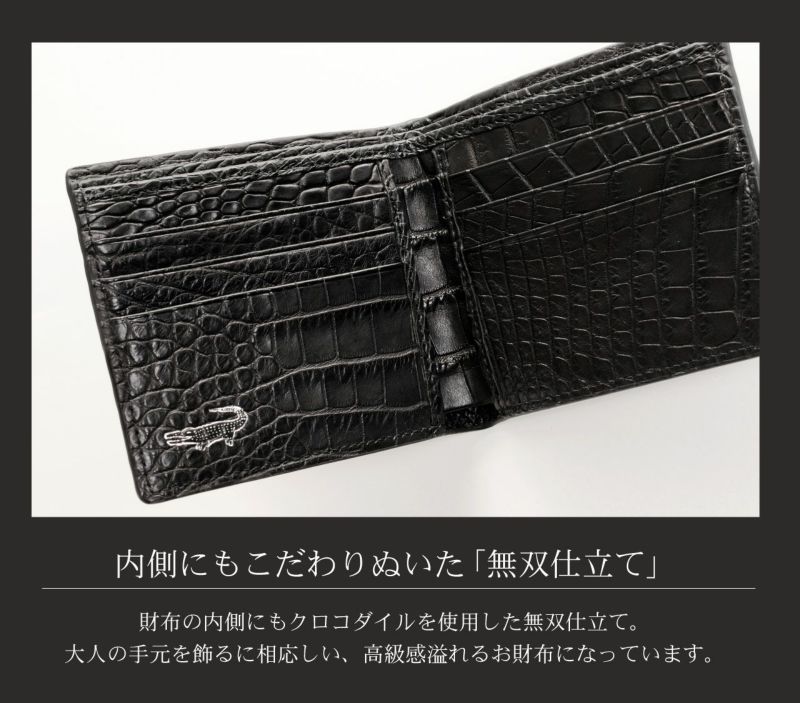 高級皮革クロコダイルが品格をあげる、大人のためのお財布です。