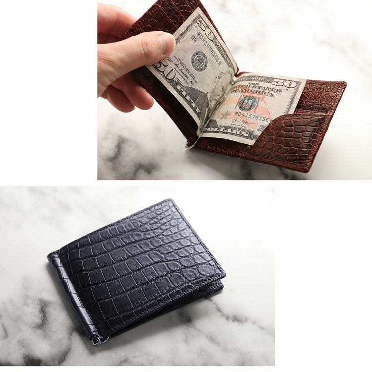 ※キーワード:ナイルクロコダイル 本革 鰐革 スマート スタイリッシュ モード 薄い 薄型 軽量 二つ折り財布 折財布 折り財布 さいふ ビジネス