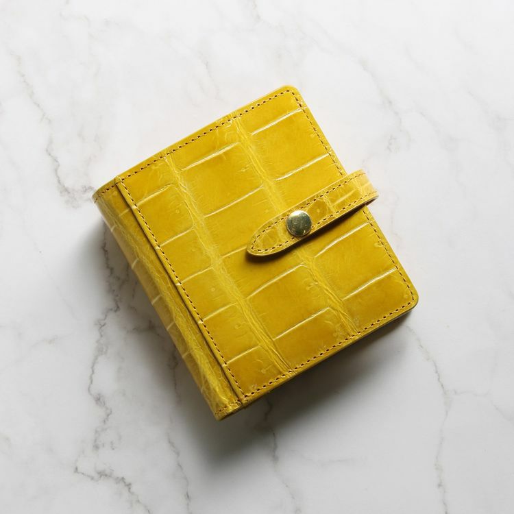 ベルトデザインがおしゃれなクロコダイルの二つ折り財布。