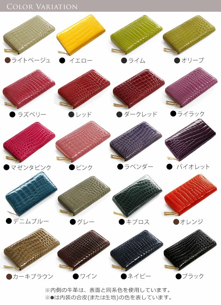 他の画像を見る exotic leather クロコダイル 長財布 シャイニング 加工 センター取り 一枚革 メタル ラウンド ファスナー レディース 4FA ¥ 85,800 税込 3.00 (1件) お気に入りに登録する