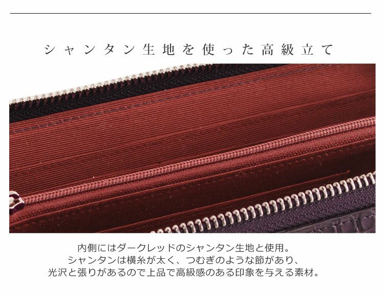 | 素材 | 表側:クロコダイル(本革)、内装:シャンタン生地 |
