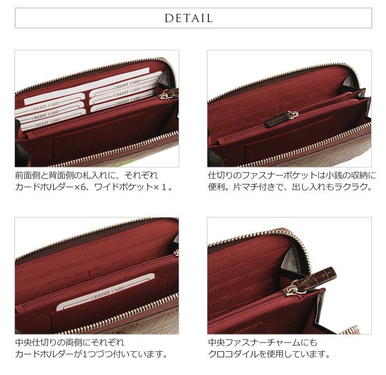 | 商品名:クロコダイル 長財布 マット加工 ラウンドファスナー / レディース |