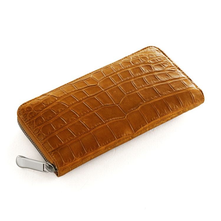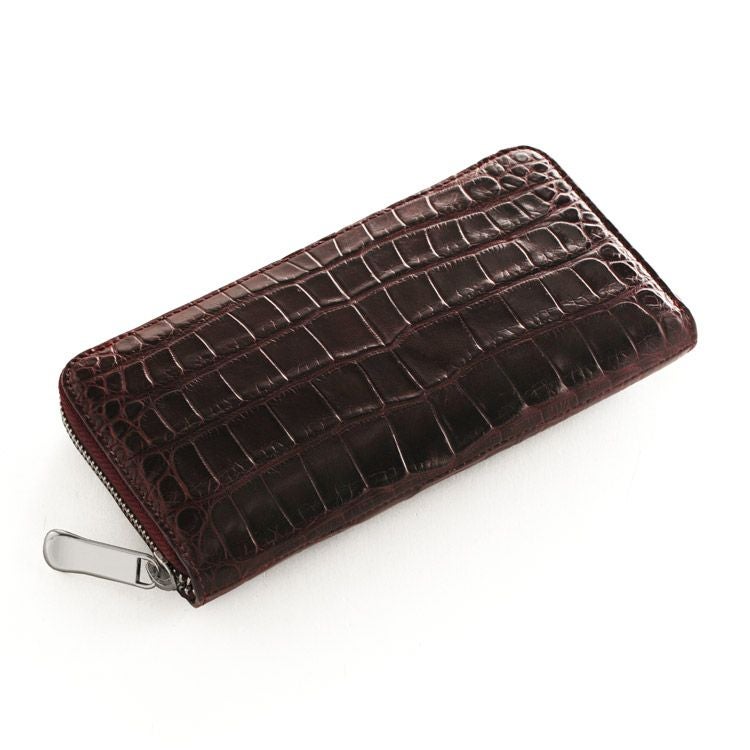 ラウンドファスナーで使いやすいクロコダイルの長財布。
