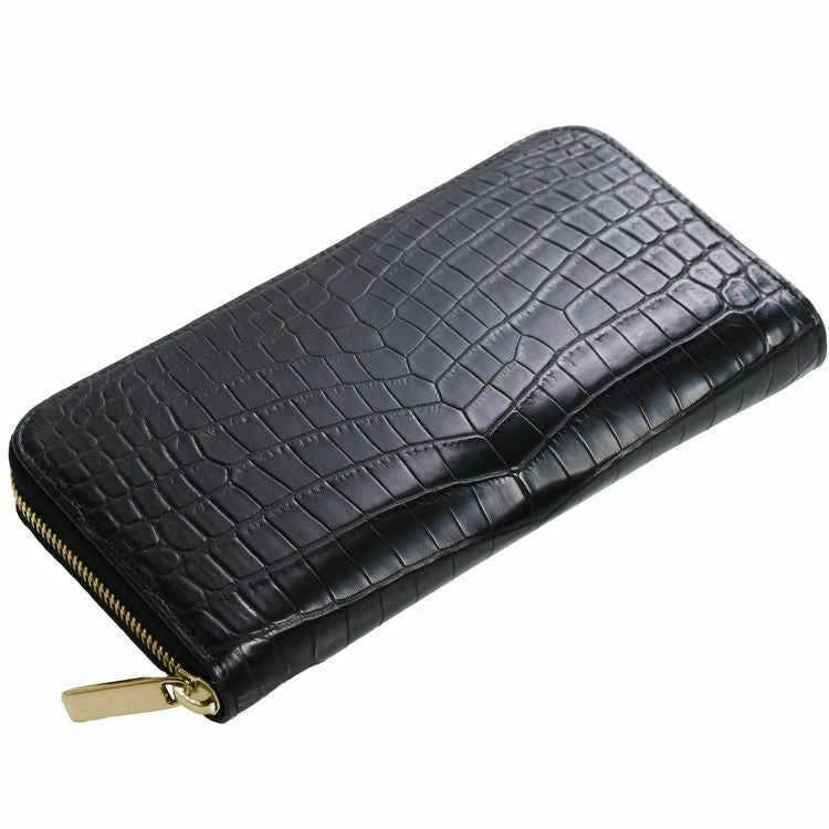 HALEINE クロコダイル 日本製 レディース 長財布 ラウンドファスナー シャイニング マット 加工 一枚革 センター取り