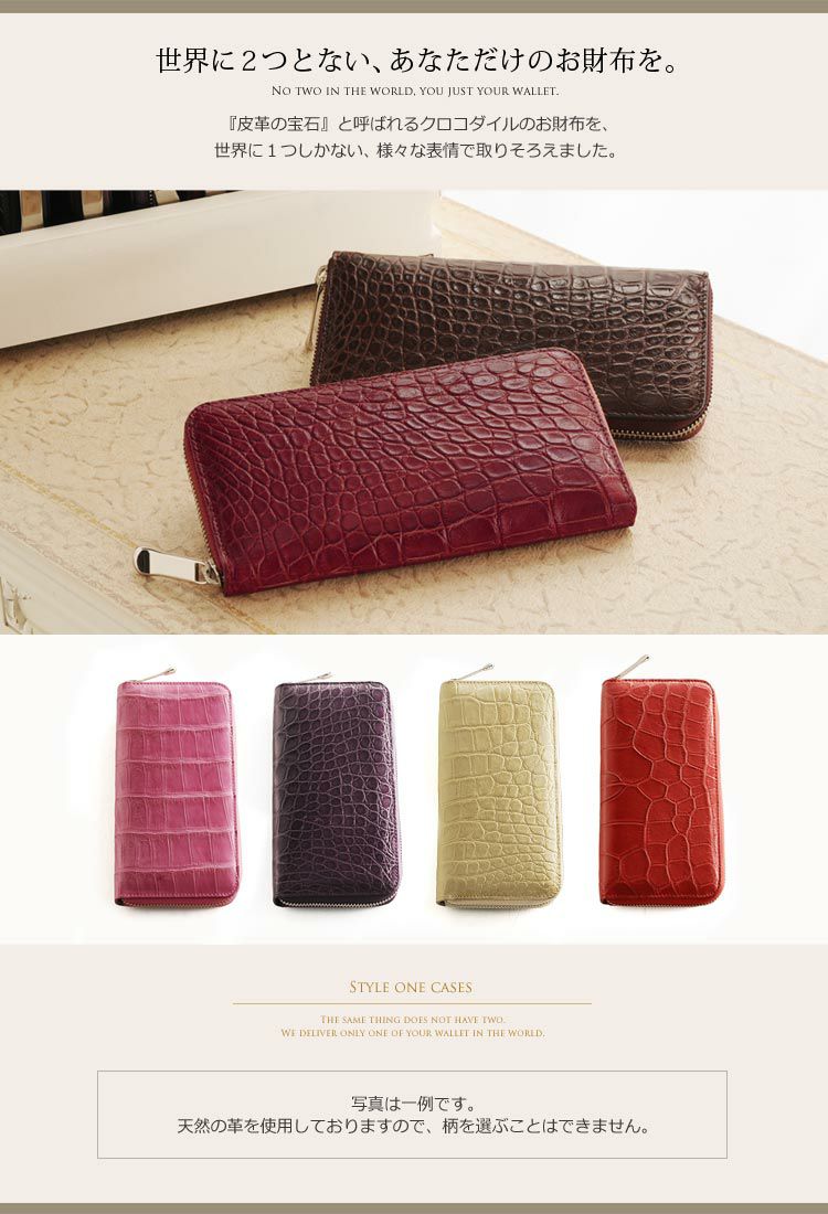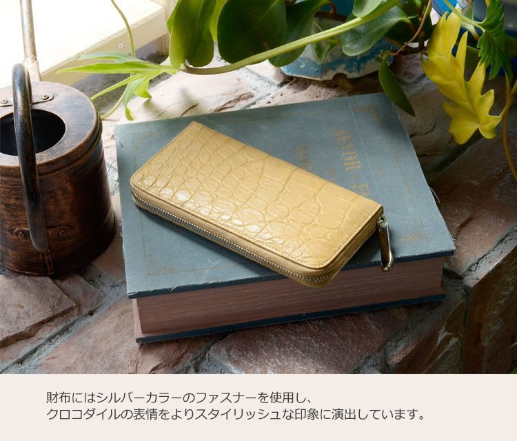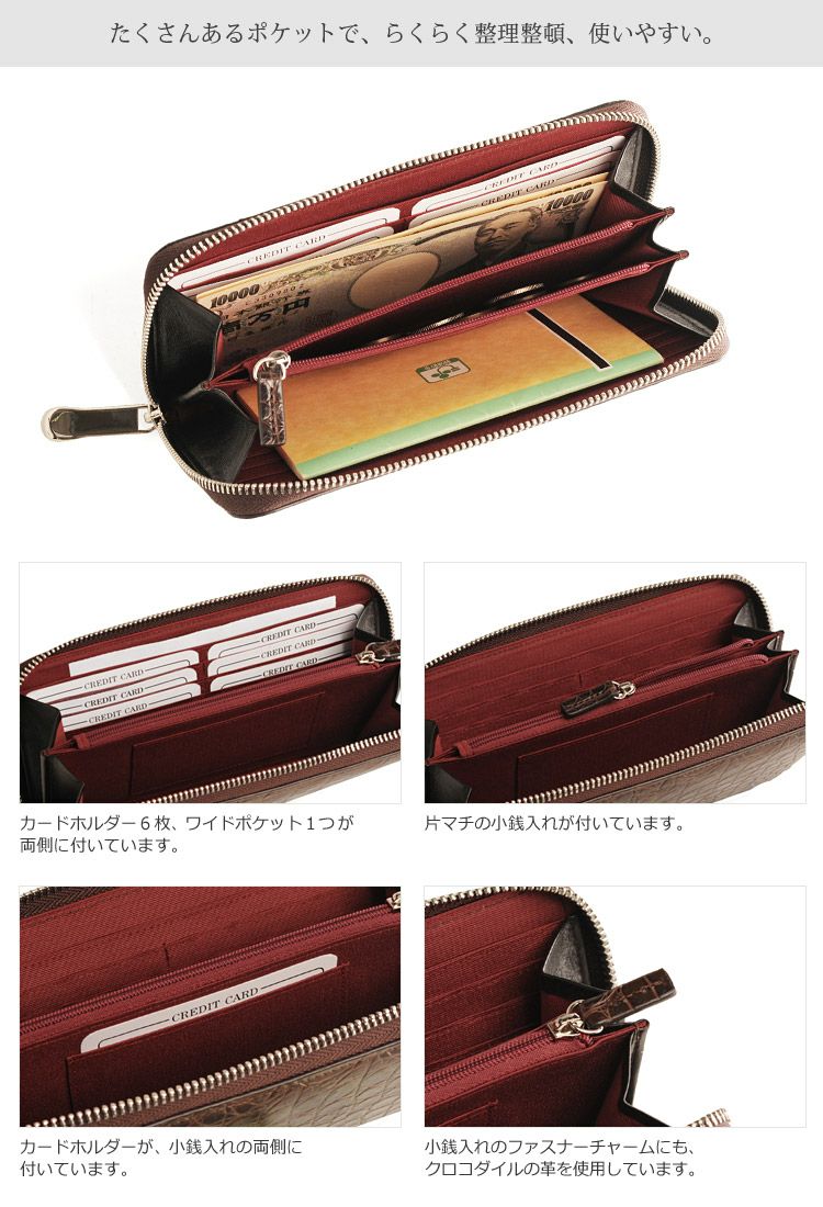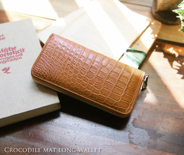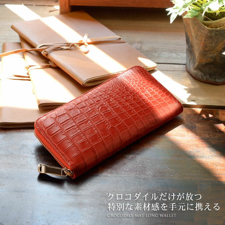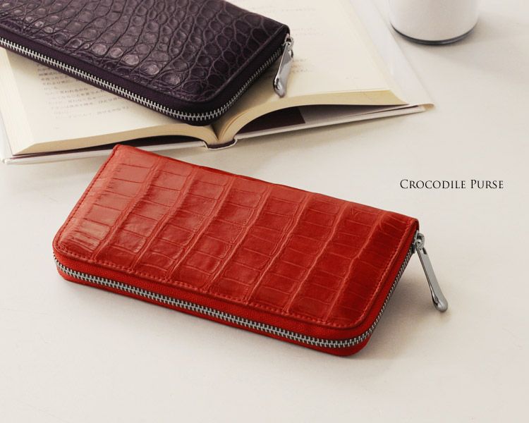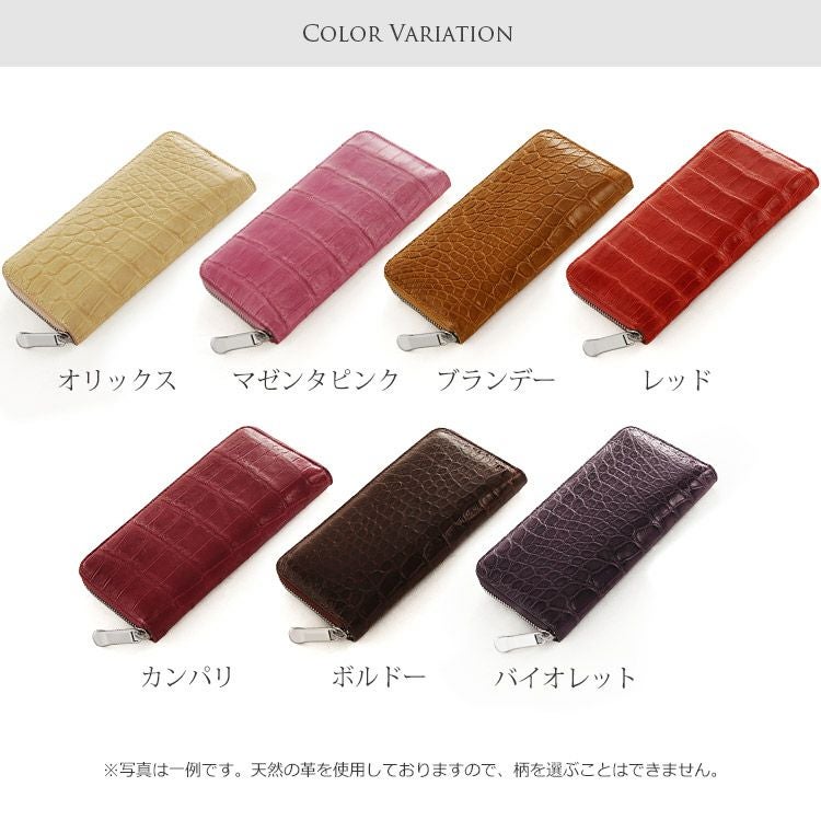 | 商品名:クロコダイル 長財布 レディース マット加工 ラウンドファスナー |