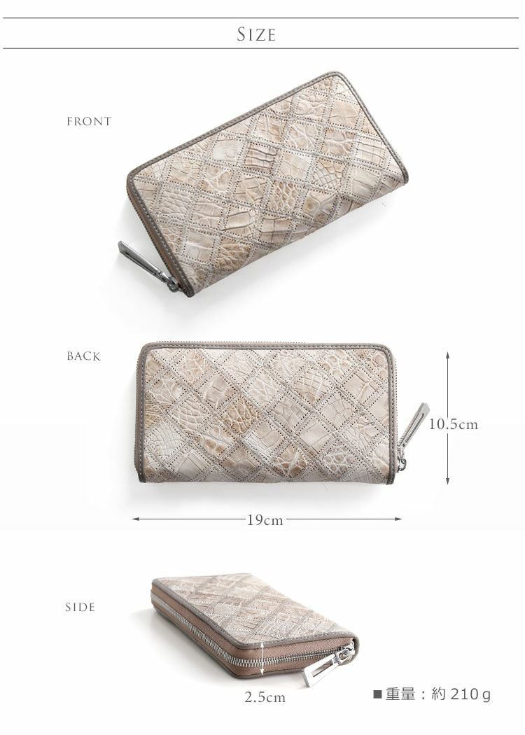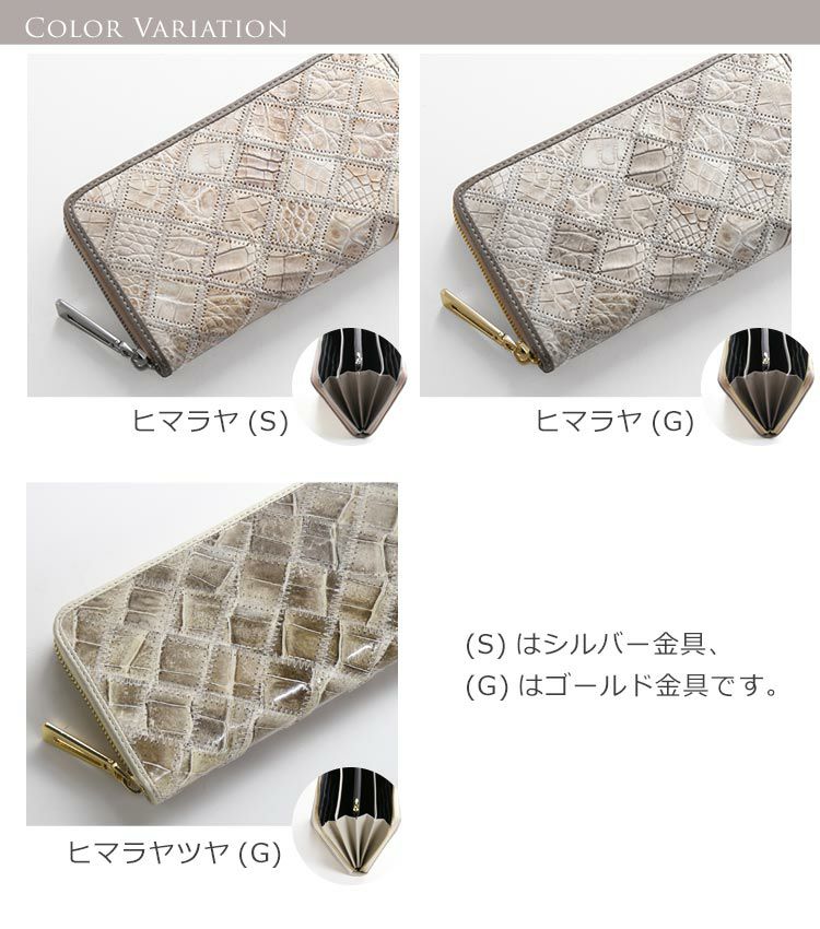 ヒマラヤ クロコダイル 長財布 レディース ラウンド ファスナー モザイク ステッチ 【ネコポスで送料無料】 本革 ゴールド 金具 ラウンド財布 レディース財布 ホワイトカラー 春財布 母の日 ギフト プレゼント