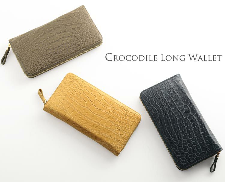 商品名:クロコダイル 長財布 マット ヘンローン ラウンドファスナー 多機能 真鍮ファスナー ゴールド金具/ レディース
