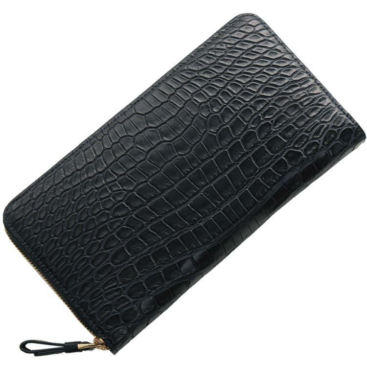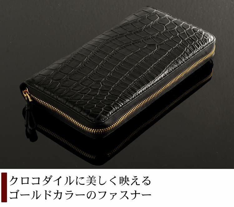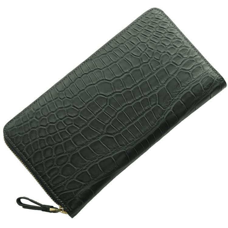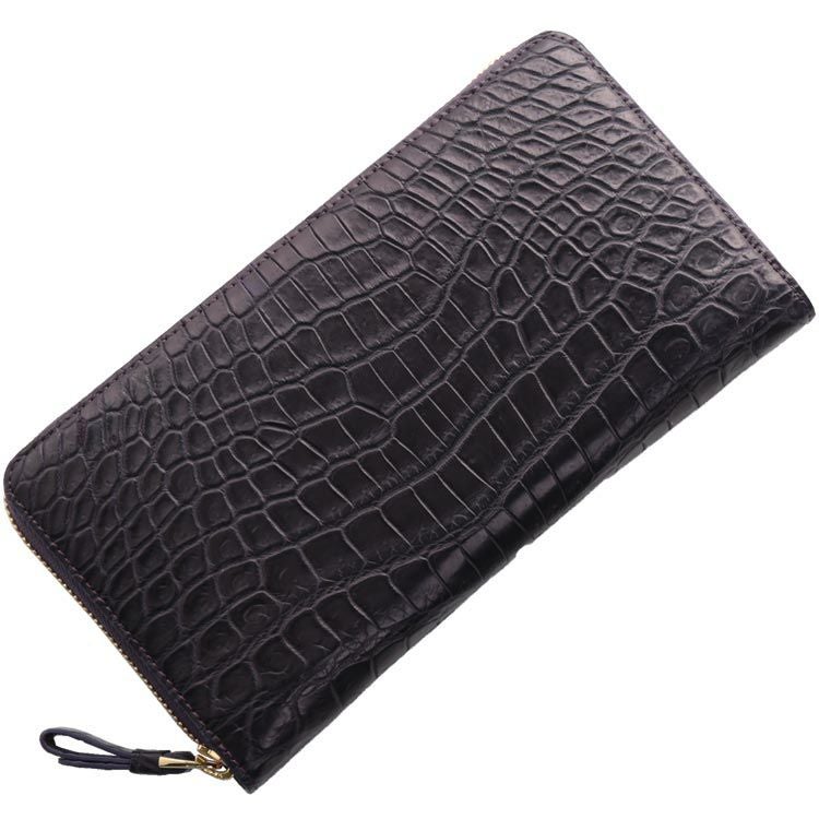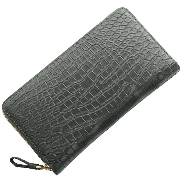 クロコダイル 長財布 マット ラウンドファスナー 多機能 真鍮ファスナー ゴールド金具 レディース 4FA