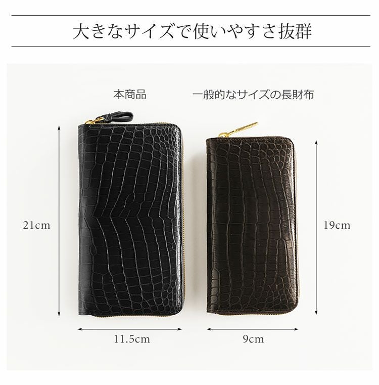 クロコダイルの美しさだけでなく、使いやすさを考えた機能的な長財布。
