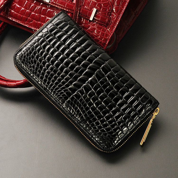 ナイルクロコダイルを使用したラウンドファスナー長財布。