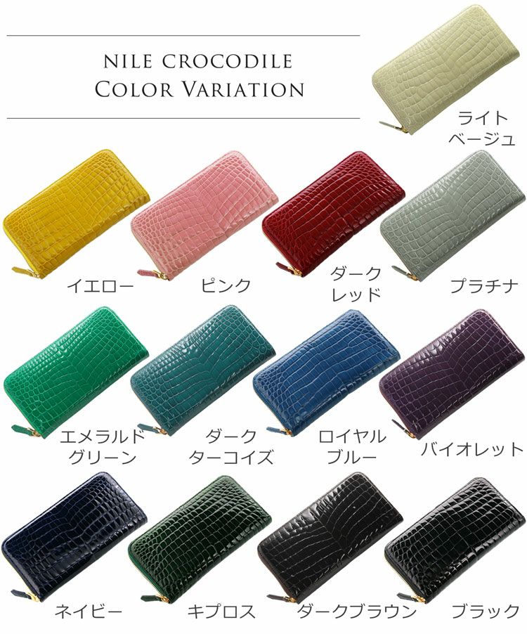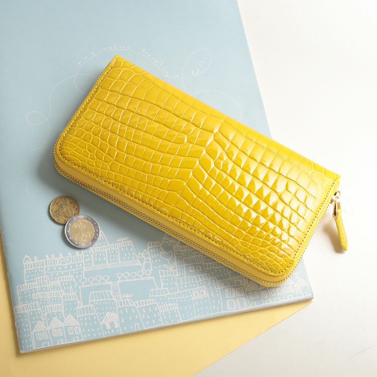 ナイルクロコダイルを使用したラウンドファスナー長財布。