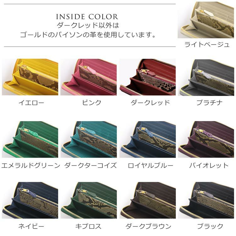 内側の小銭入れの仕切りは、表面と裏面に表面と同系色のパイソンの革を使用しています。