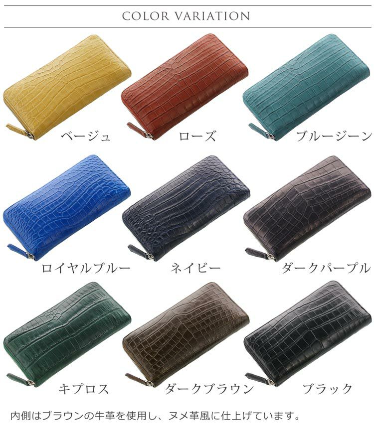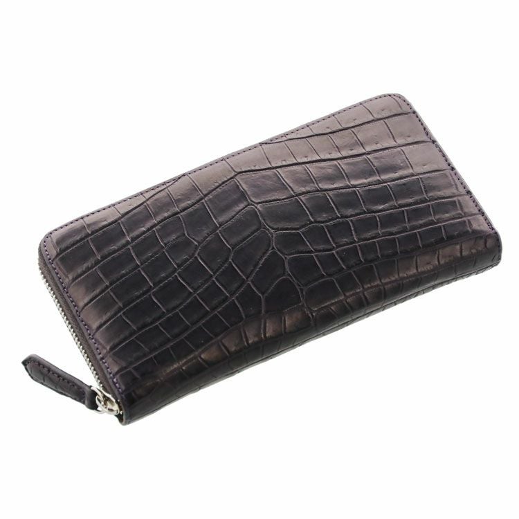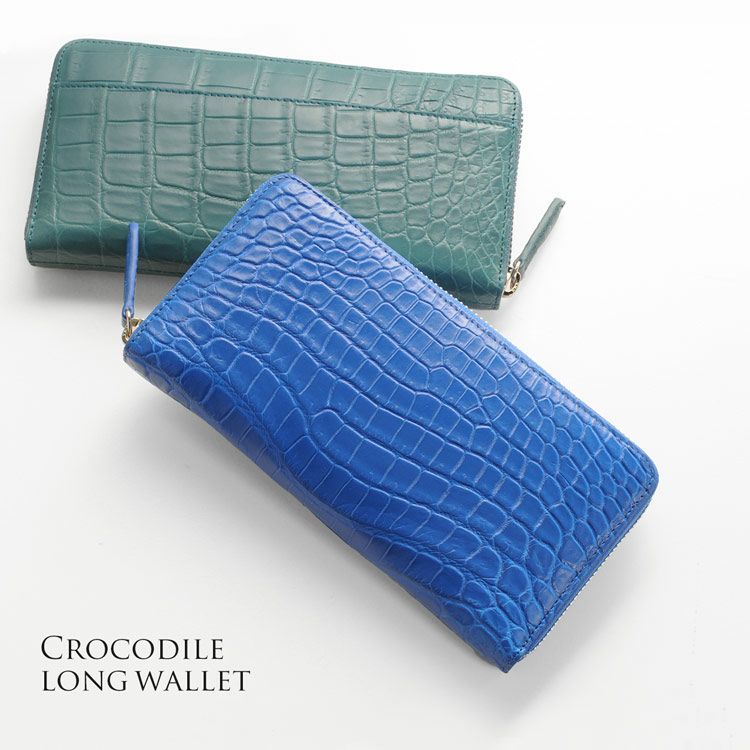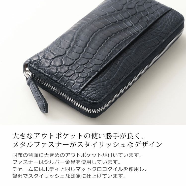 クロコダイル 長財布 マット 加工 ラウンドファスナー アウトポケット付き レディース 全9色 4FA