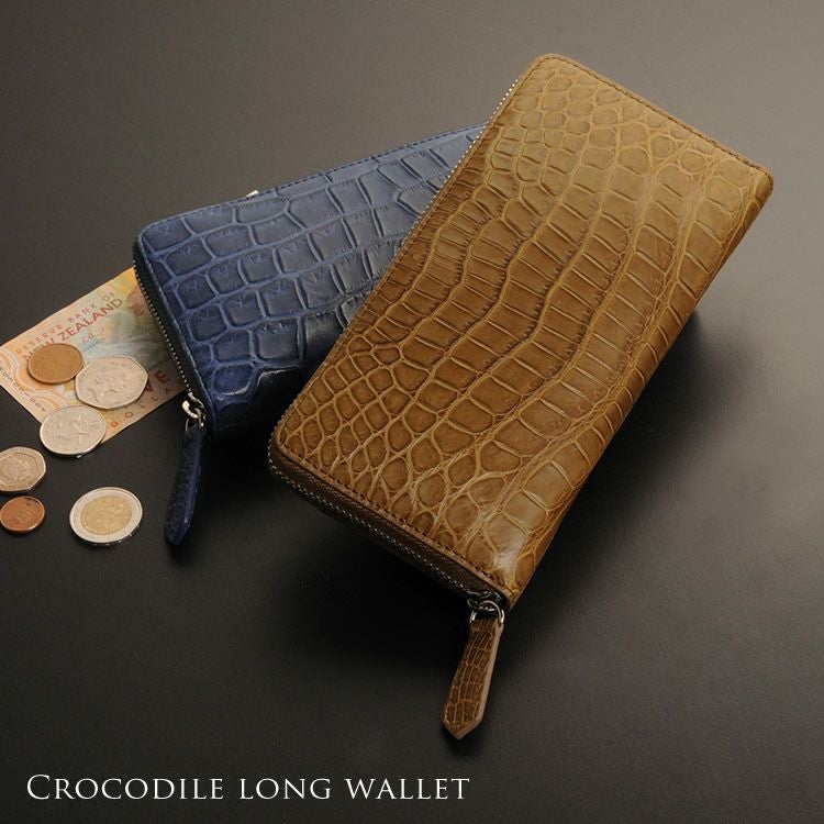 持つだけで品格上がるクロコダイルの長財布。紙幣入れが4つあるので、財布の中身がしっかりと整頓できます。