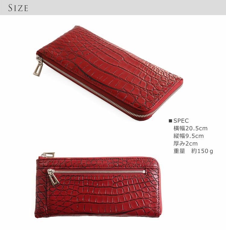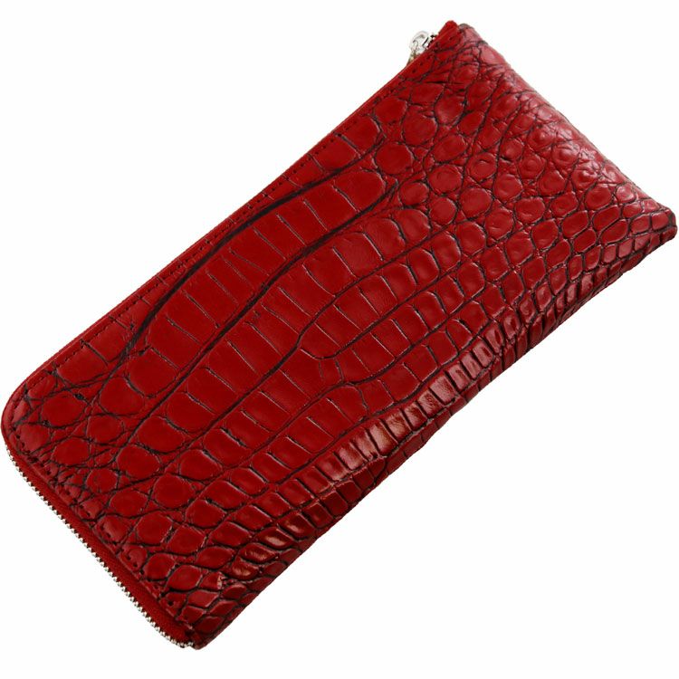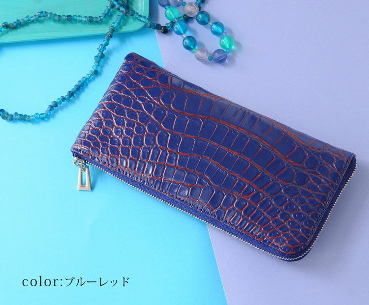 クロコダイル 長財布 L字 ファスナー 小銭入れ 付き レッド/ブラック/ブルー/キャメル 4FA