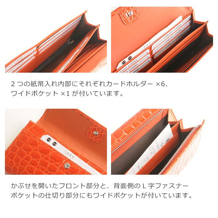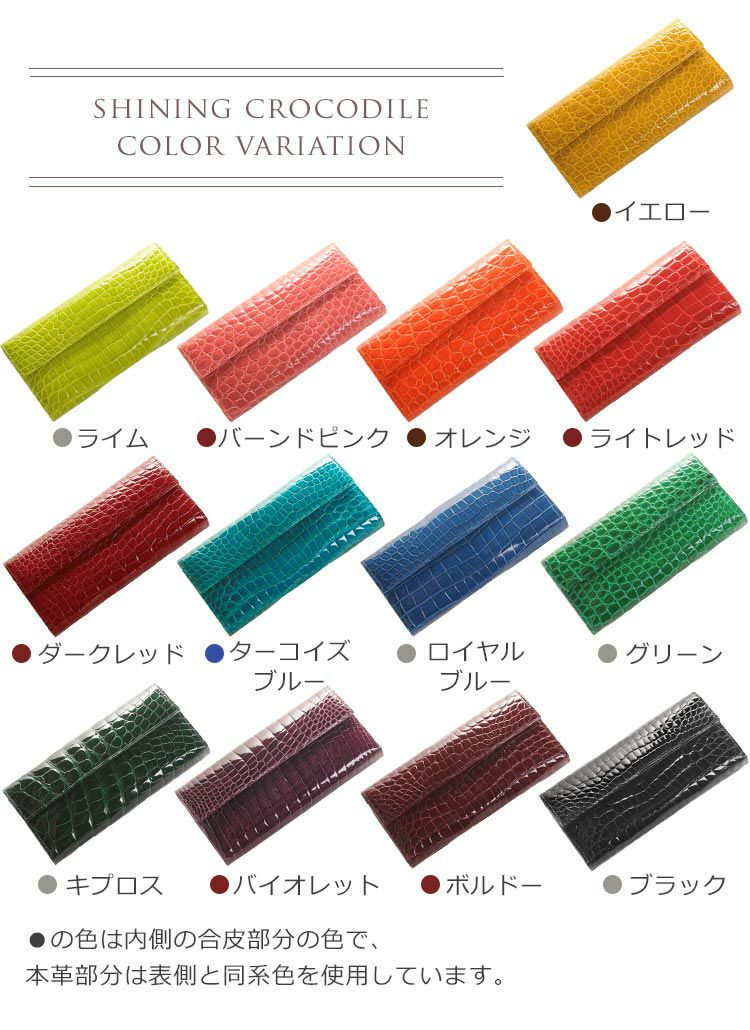 | 商品名:クロコダイル 長財布 日本製 かぶせ 背面L字ファスナー シャイニング 加工 全13色 JRA |