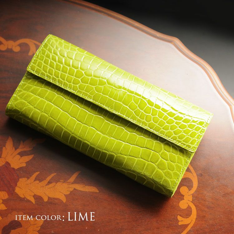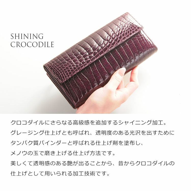 美しく輝くクロコダイルを使用し日本の職人が仕立てた長財布。