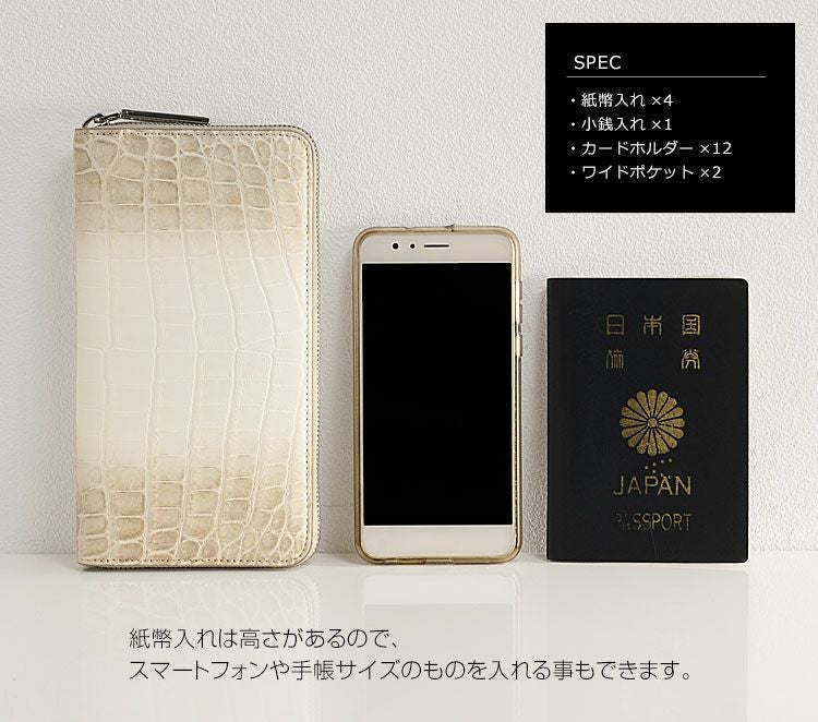 | 商品名:ヒマラヤ クロコダイル ラウンドファスナー 長財布 レディース 一枚革 センター取り |