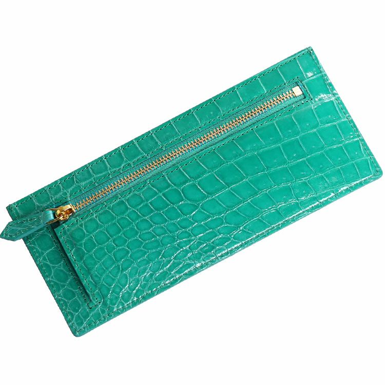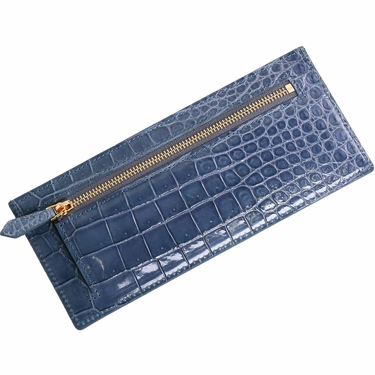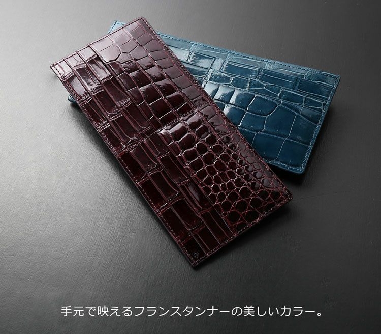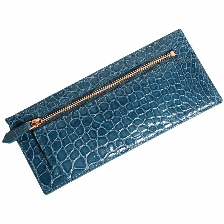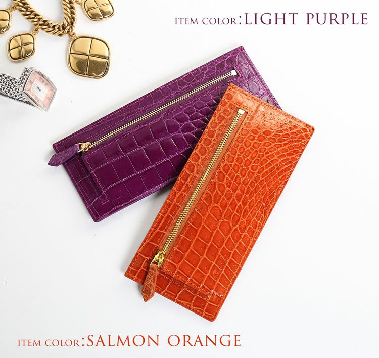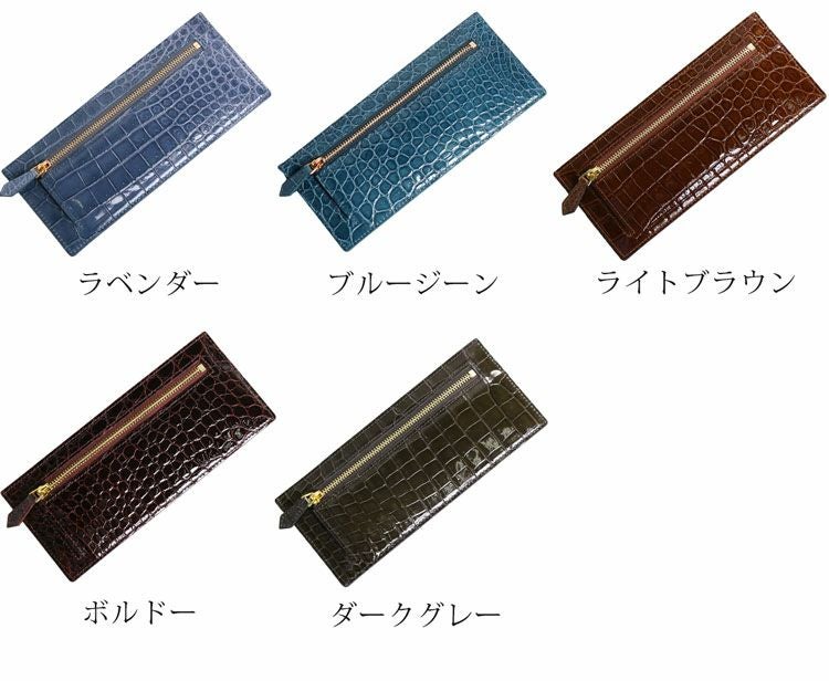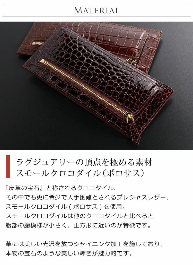 天然皮革 エキゾチックレザー クロコダイル スリム 長財布 フラグメントケース レディース ポロサス スモールクロコダイル シャイニング 加工 全14色 本革 薄型 財布 プレゼント 春財布 ギフト