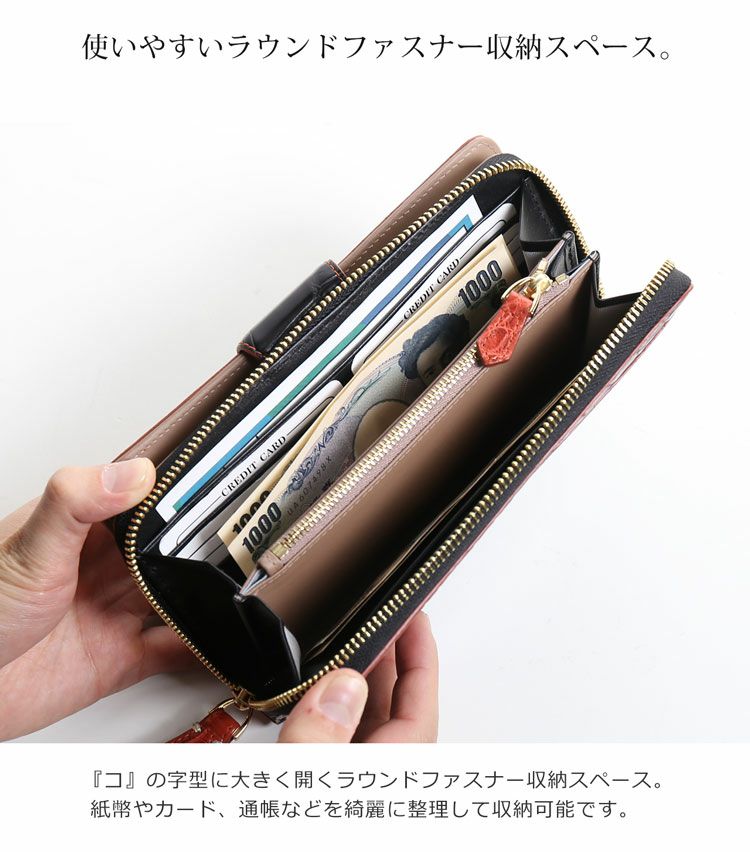 | 商品名:マット クロコ ベロ付き ラウンドファスナー 長財布 |