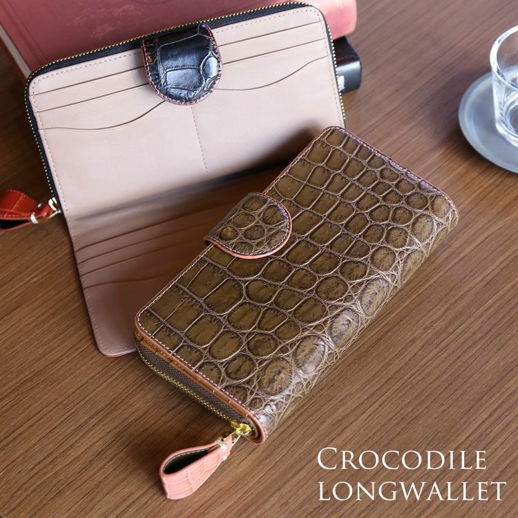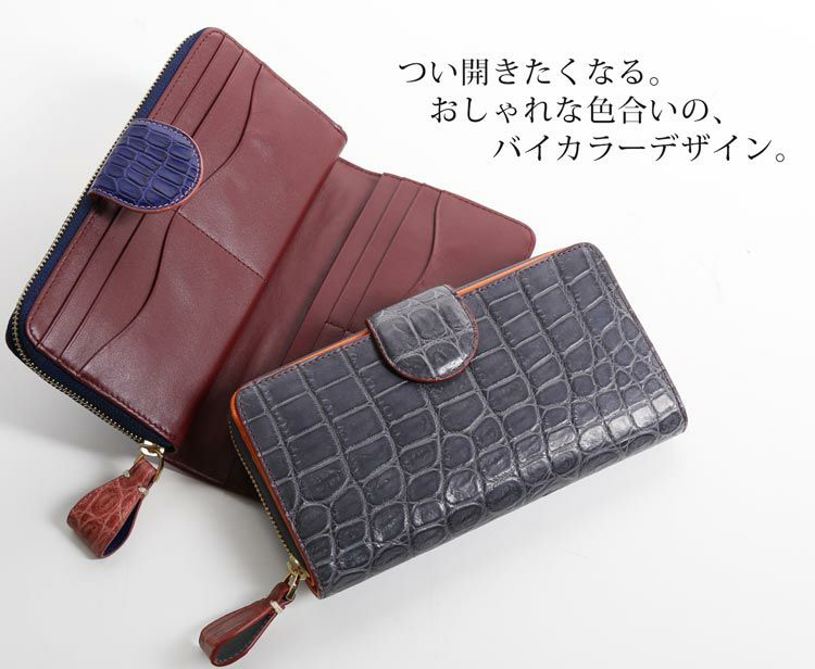 バイカラーがおしゃれなクロコダイル長財布。
