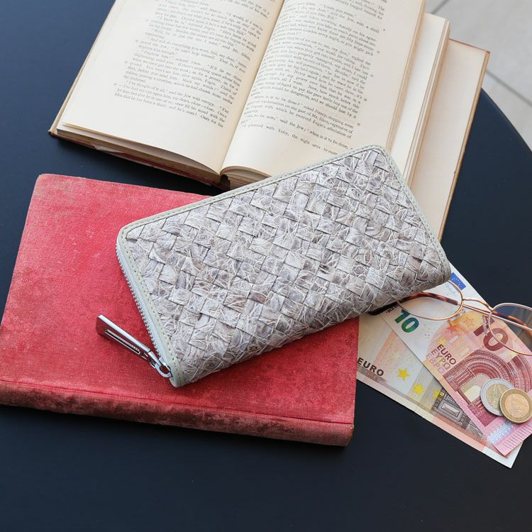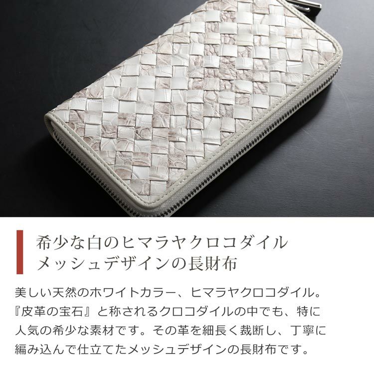 天然のホワイトカラーが魅力のヒマラヤクロコダイルの長財布。