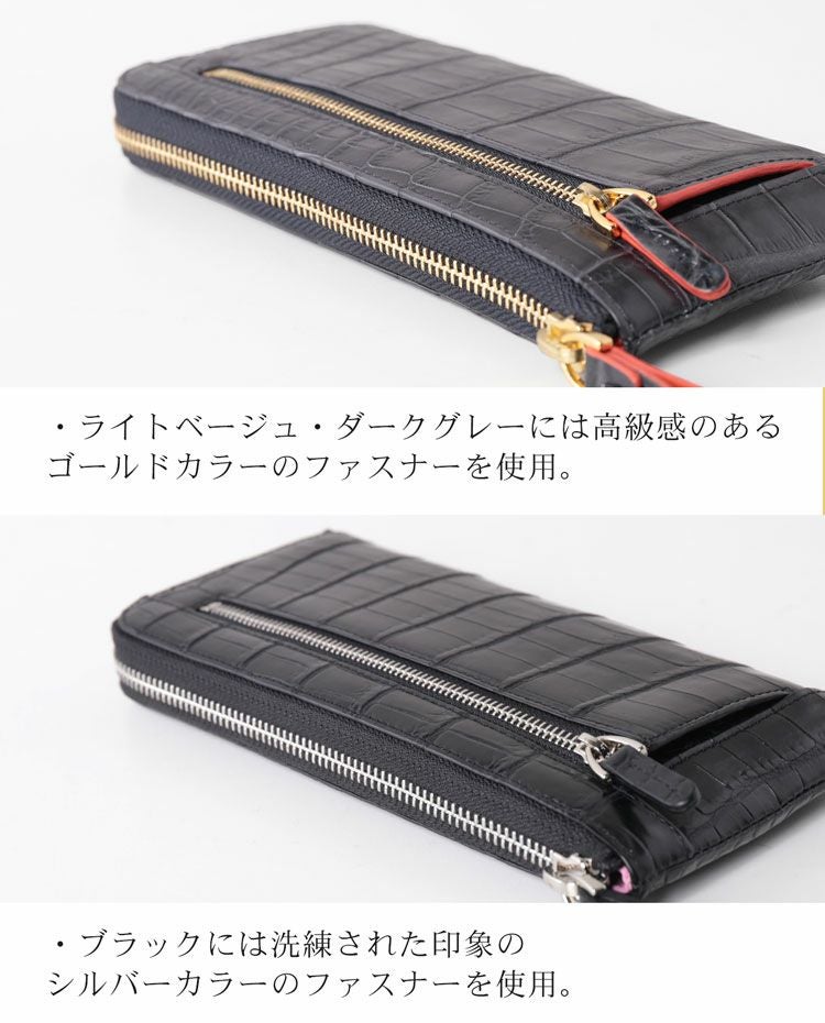 天然皮革 エキゾチックレザー クロコダイル 長財布 レディース マット L字ファスナー バイカラー 本革 軽い 薄型 薄い 使いやすい スリム 財布 ワニ革 ベージュ グレー ブラック プレゼント 母 女性 春財布