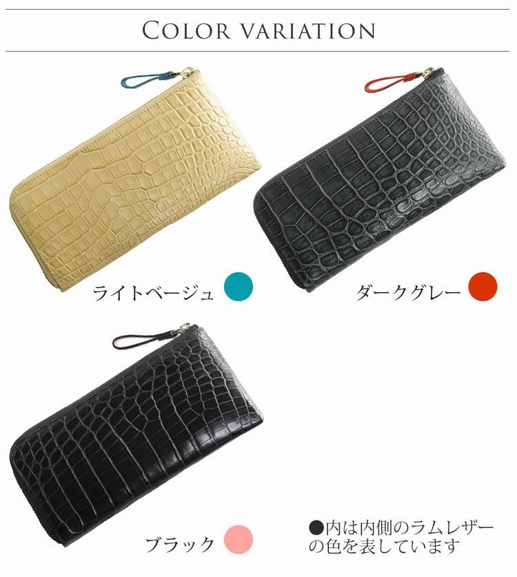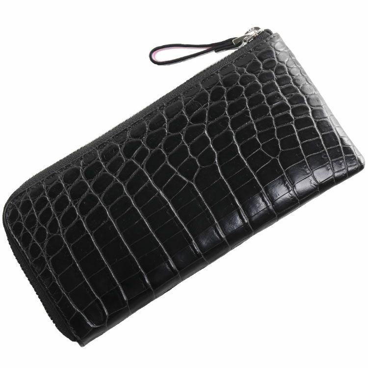 クロコダイルを使用したスリムなL字ファスナー長財布。
