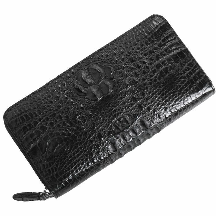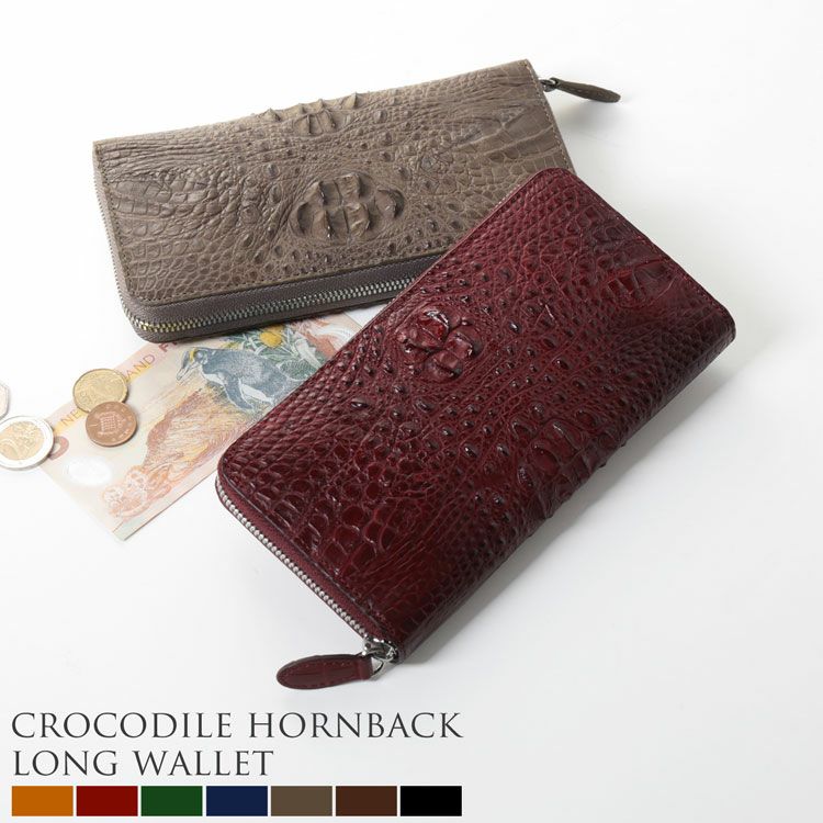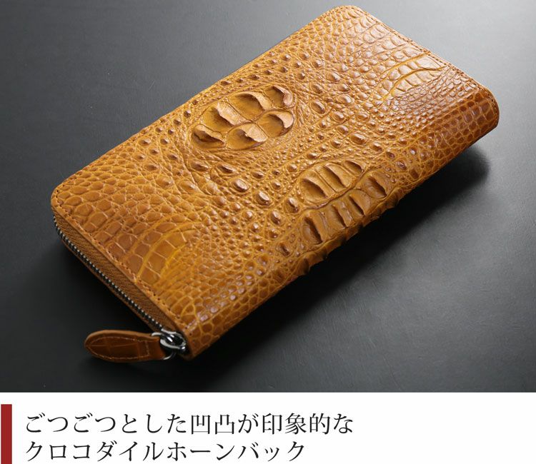 ゴツゴツした印象のクロコダイルホーンバックを使用したラウンドファスナー長財布。