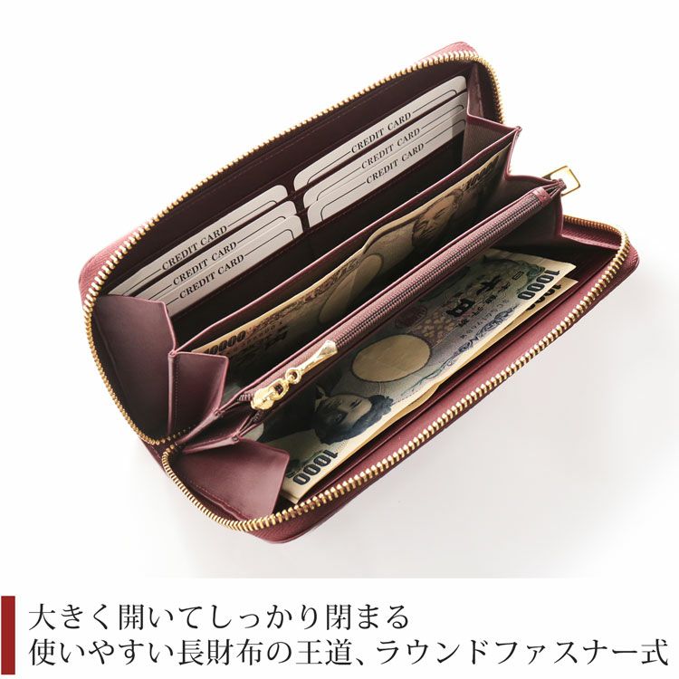 財布のまわりにぐるりと『コ』の字型にファスナーが付いたラウンドファスナー式。