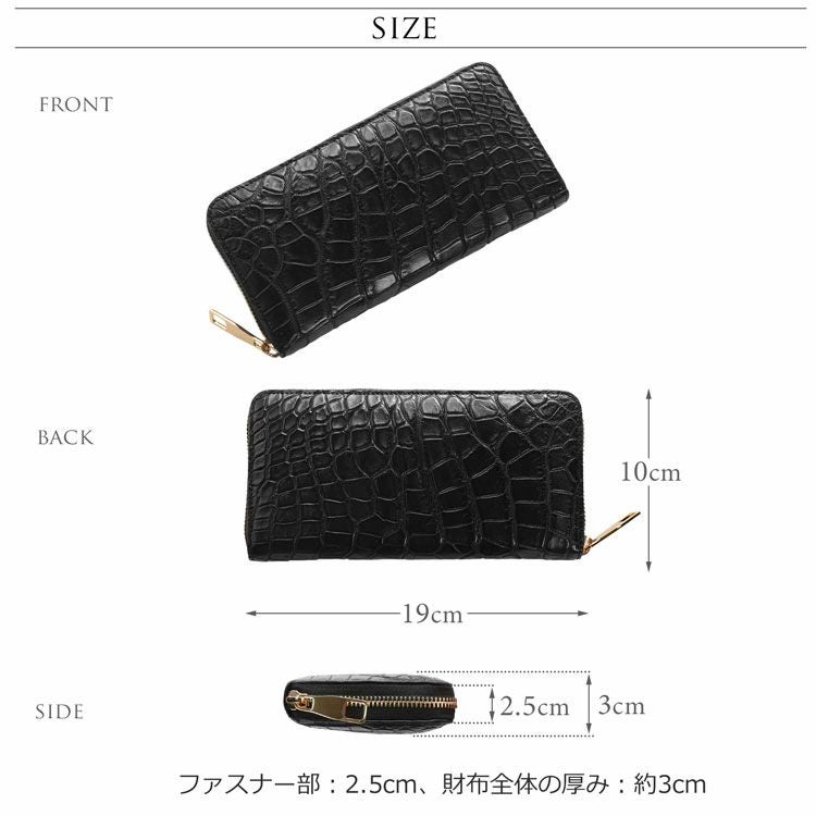 | 商品名:スモール クロコダイル 長財布 ラウンドファスナー 一枚革 マット 加工 ポロサス |