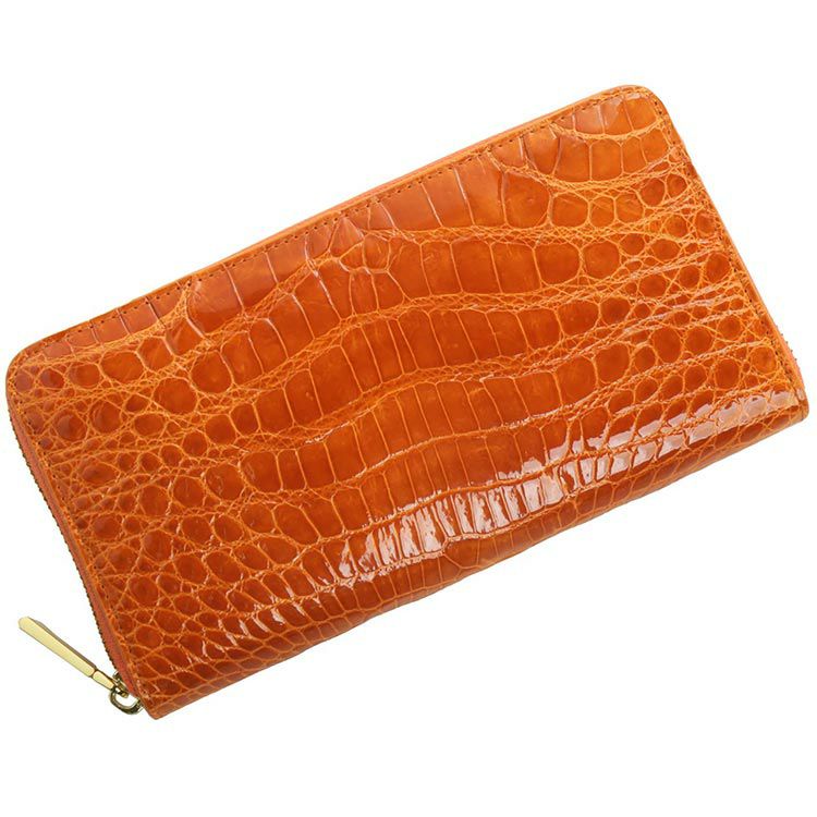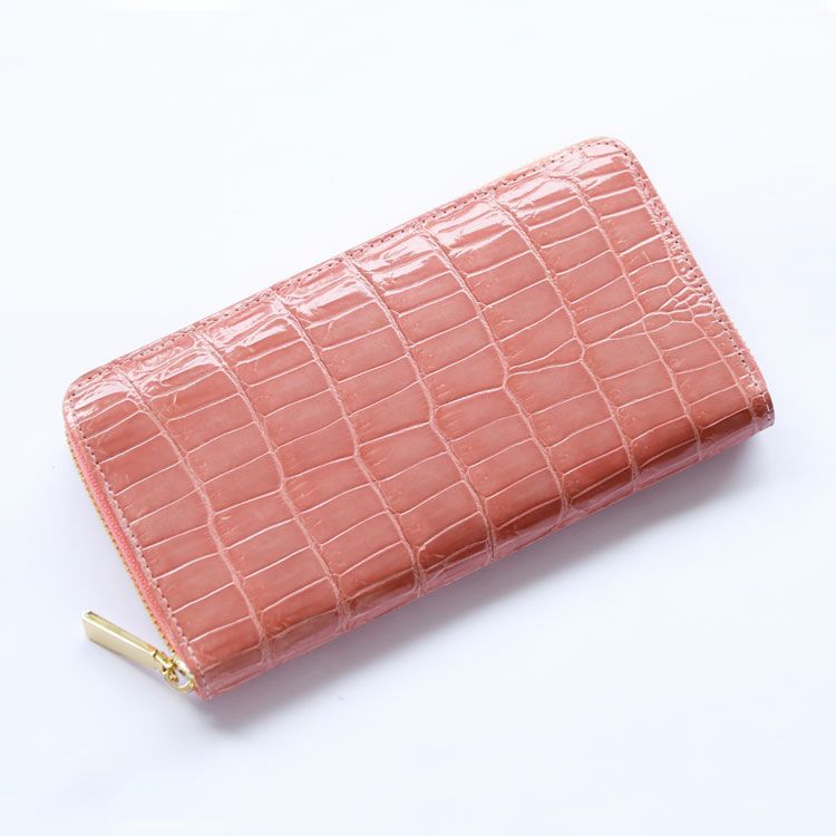 ※キーワード:鰐 ワニ わに革 鰐革 光沢 高級 ゴールド ファスナー 本革 全8色 婦人財布 高級感 艶 美しい 母 女性 プレゼント 春財布