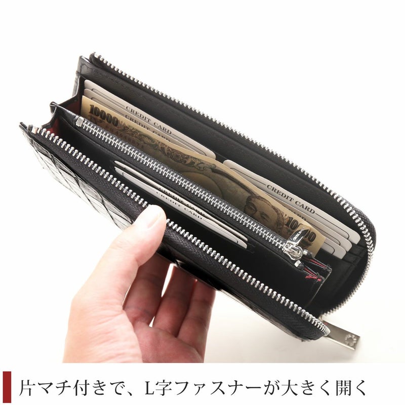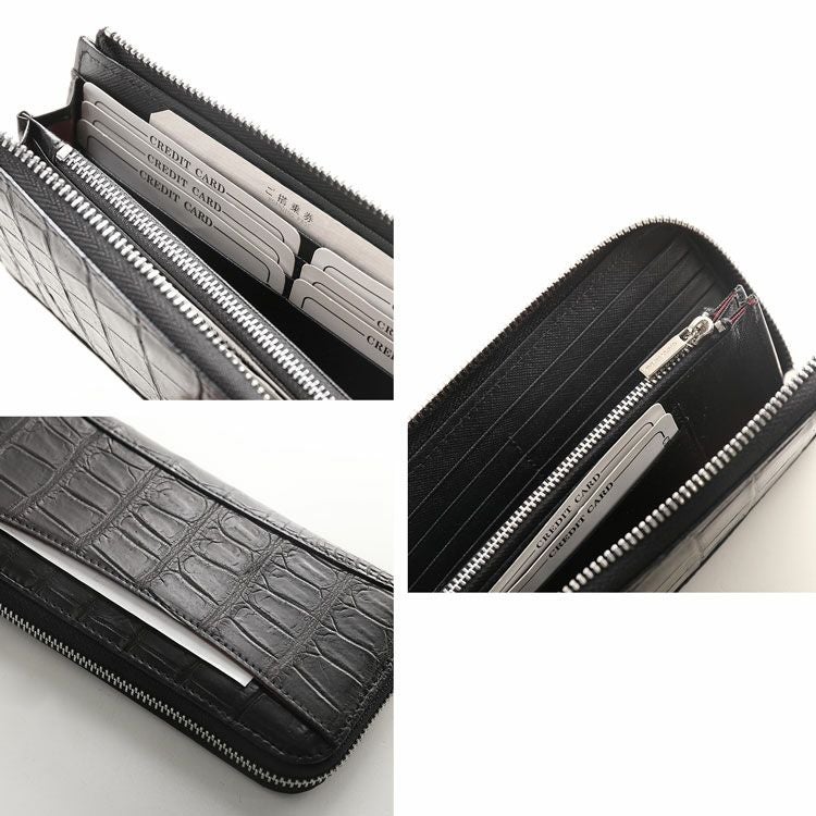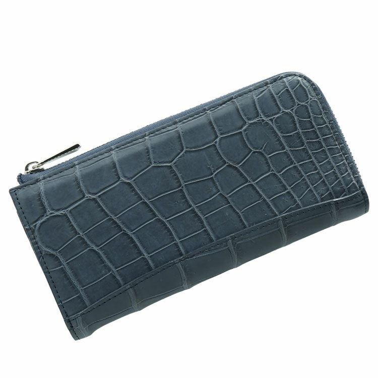 クロコダイル 長財布 L字ファスナー 日本製 鰐革 アウトポケット付き シルバー金具 4FA