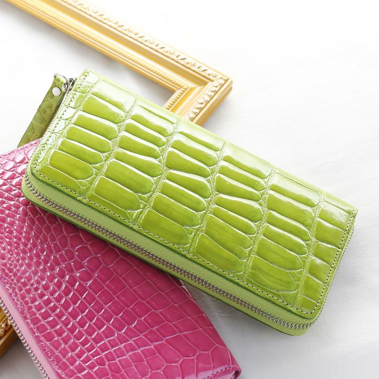 天然皮革 エキゾチックレザー クロコダイル 長財布 シャイニング 加工 ラウンドファスナー レディース ヘンローン 本革 レザー 鰐 わに ワニ革 女性 贈り物 エレガント 上品 プレゼント ギフト 【各色1点限り】 母の日