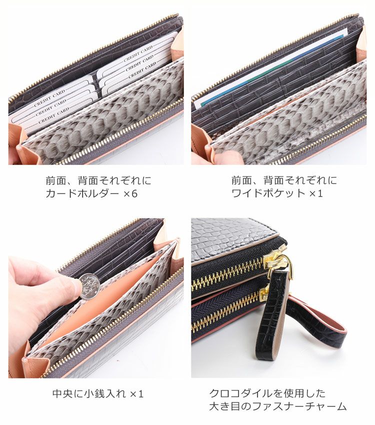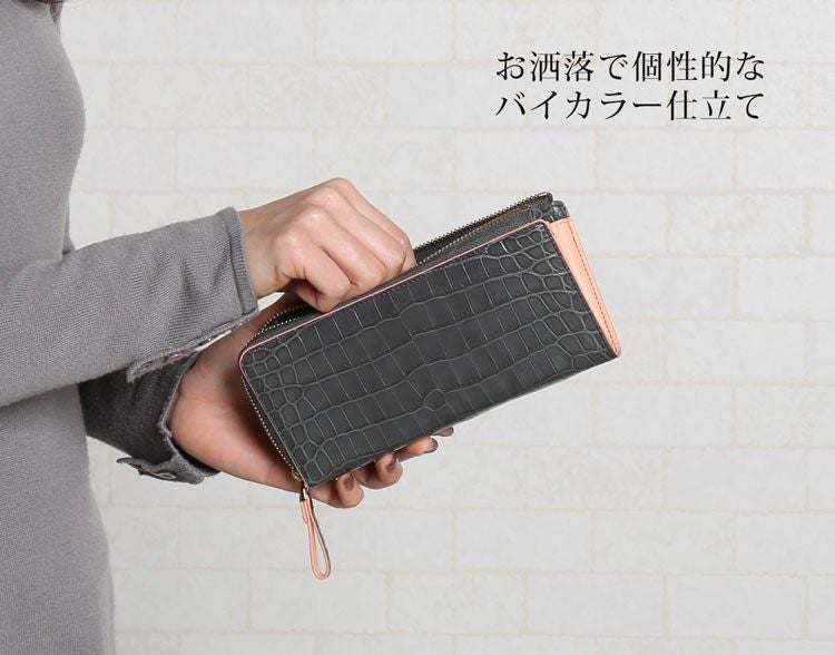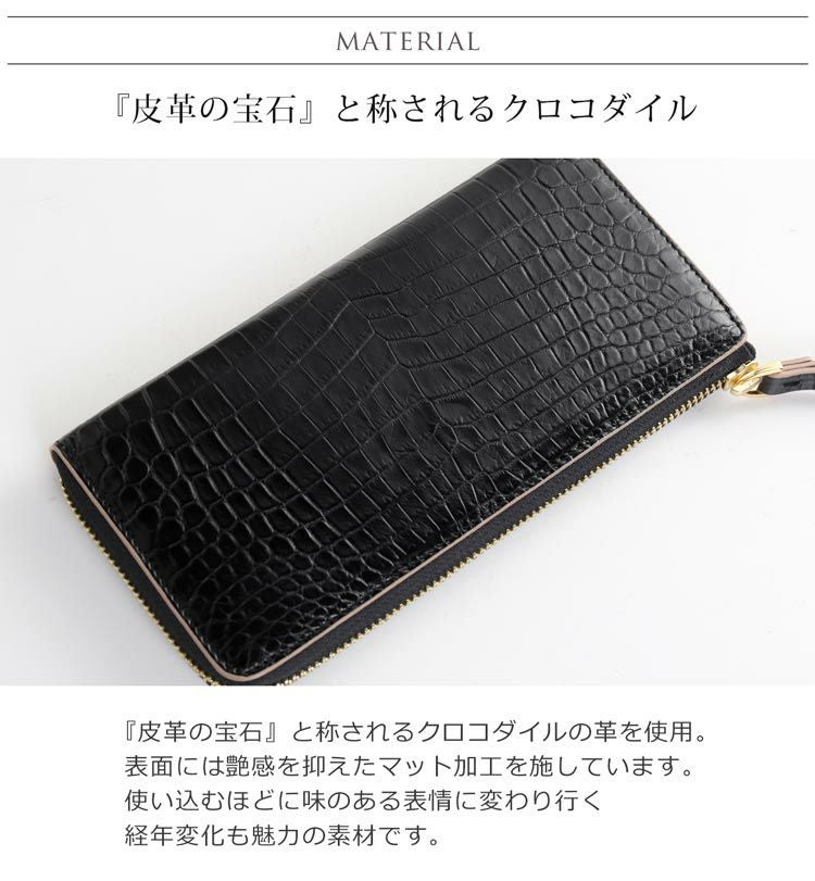 クロコダイルの財布の中でも人気の高いレディース長財布をご案内。