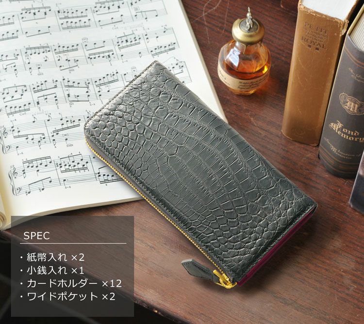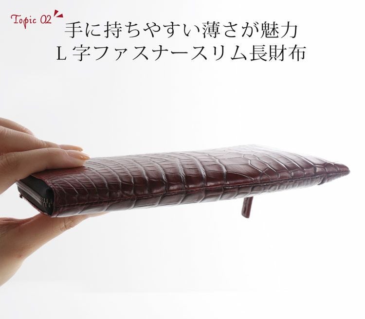 クロコダイルの財布の中でも人気の高いレディース長財布をご案内。