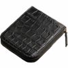 クロコダイル コインケース IC カードケース付き マット加工 ラウンドファスナー レディース ブラック 4FA