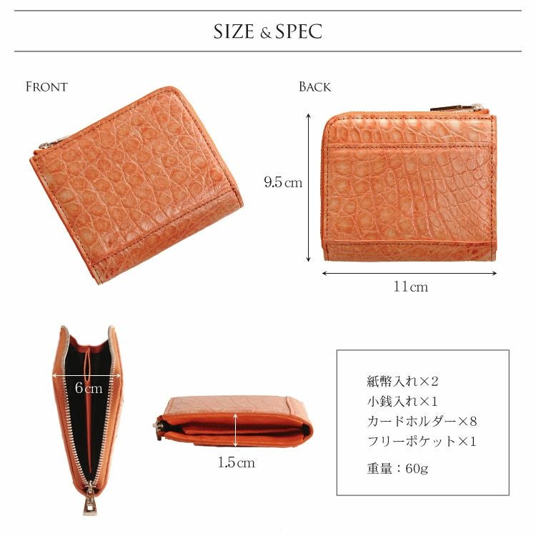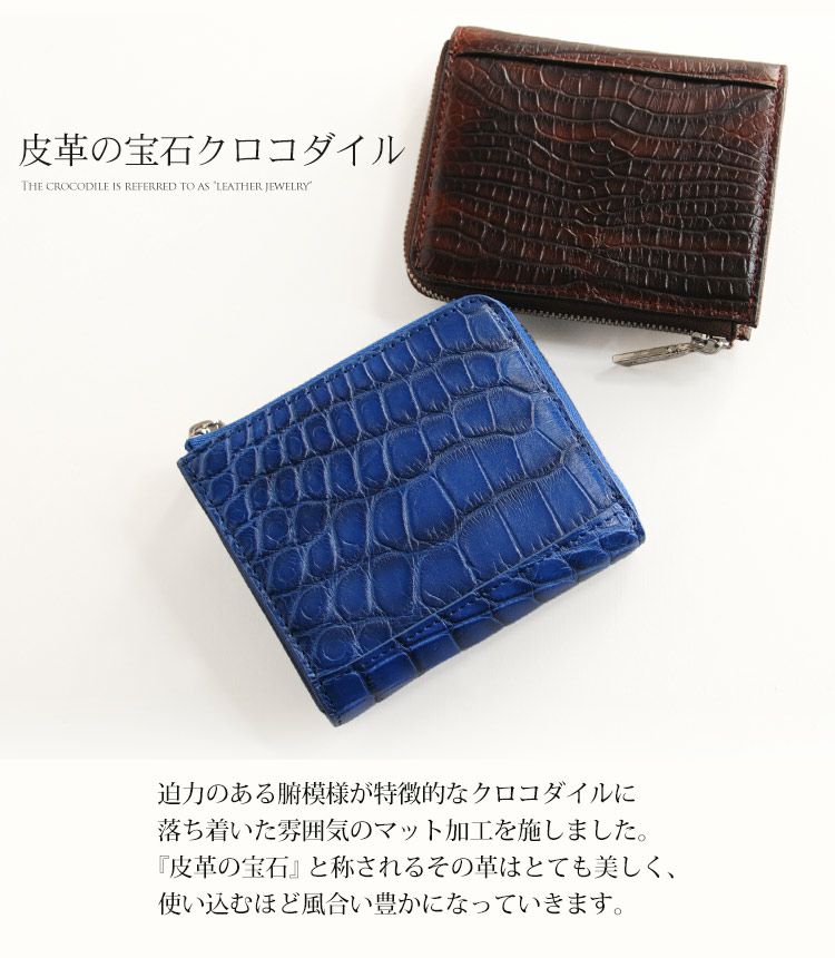 コンパクト 財布 クロコダイル マット L字ファスナー【ネコポスで送料無料】 4FA