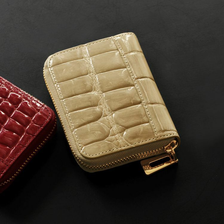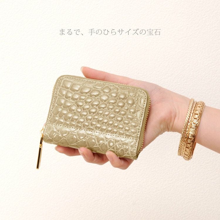 シャイニング加工 クロコダイル ラウンドファスナー ミニ財布 4FA