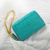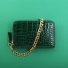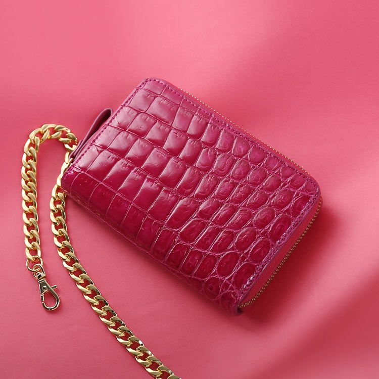 クロコダイル 財布 レディース 二つ折り財布 コンパクト財布 革 チェーンストラップ付き ラウンドファスナー ボックス型小銭入れ お札 折らない ウォレットチェーン クロコダイル財布 黒 ブラック ピンク グリーン 緑 本革 (06001928r)