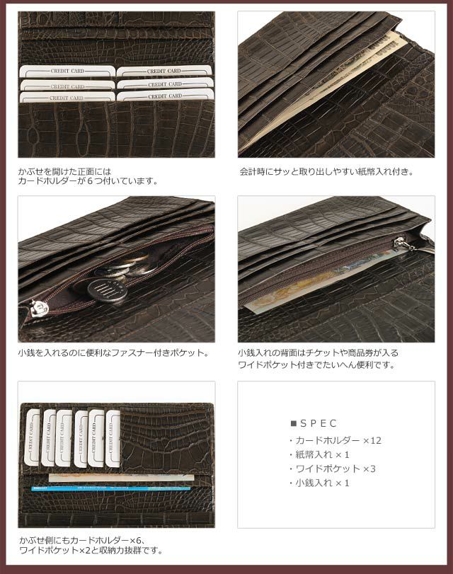 他の画像を見る exotic leather クロコダイル 長財布 センター取り 一枚革 無双 日本製 メタリック 目地染め 変わり染め JRA 4FC ¥ 96,800 税込 (0件) お気に入りに登録する