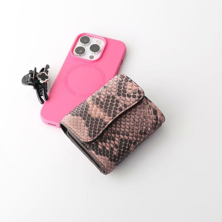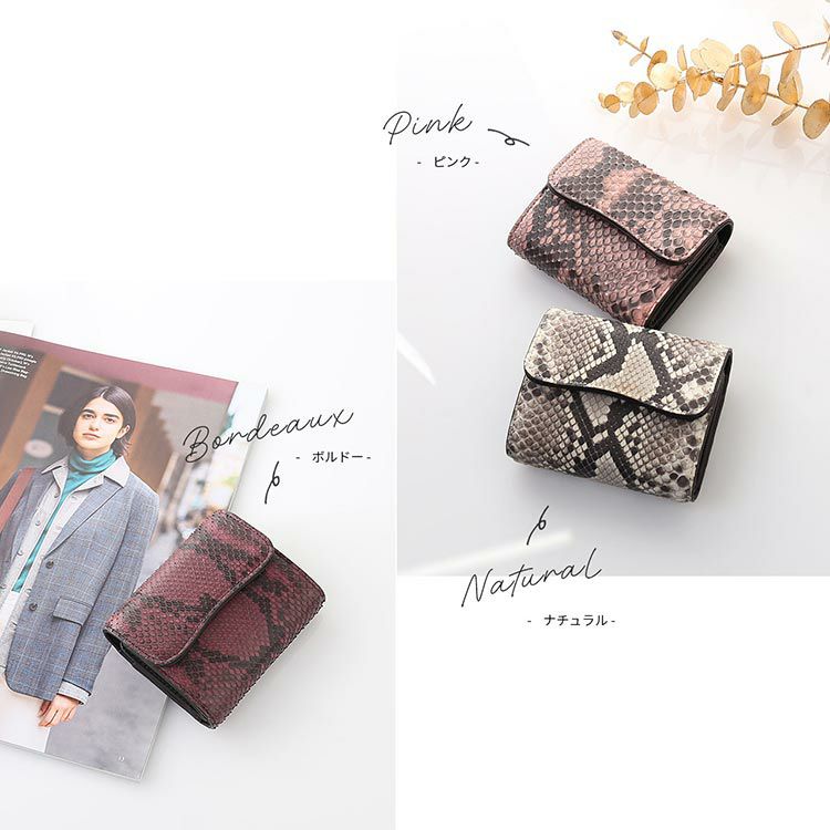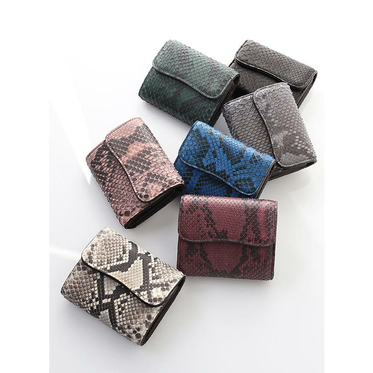 三つ折り財布 レディース ダイヤモンドパイソン 本革 3つ折り ミニ財布 コンパクト財布 HALEINE アレンヌ ブランド マチ付き小銭入れ 三つ折り 財布 レディース財布 ヘビ 革 蛇革 パイソン革 金運 ギフト プレゼント