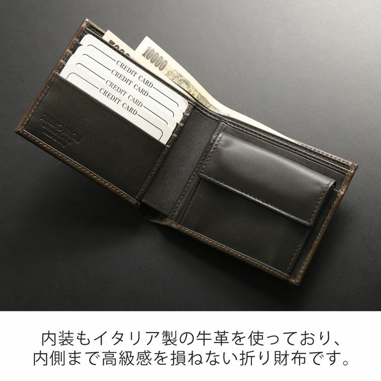 1980年代にデザイナーのアルバート・アミデイの指導の下、 職人たちの新たな拠点として、Antony Group Co. Ltdが、 モデナに設立されました。 革新的なデザイナー達のチームワークと協力の元、 高品質な素材を使ったコレクションが次々と生まれ、 2000年代の初めにSilvano Biagini(シルヴァノビアジーニ)という ブランドが設立されました。 以来、Silvano Biagini の製品は、 北イタリアの町モデナにてイタリアの職人たちの 手によって製造されています。 美しいレザーを作り続ける 老舗のイタリアタンナーから仕入れた皮革を用いて、 全ての製造工程をイタリアで行っているブランドです。 古くから美しいレザーを作り続けるイタリアのタンナーが 昔から伝わる伝統的な技術で鞣した牛革を使用しています。 革が本来持つ、血管の跡や小さな傷のようなものは 世界に一つしかないその本革が持つ個性です。 この生きた証を自然に保持したナチュラルレザー、 フルグレインレザーを使っています。 革の表面は濃淡のグラデーションを手作業で施しています。 美しい革本来表情と、イタリアらしい遊び心のある深い色合いで、 愛着を持って長く使いたくなるレザーに仕上がっています。 表面から裏面にかけて、一枚の革で仕立てています。 財布の背の部分に継ぎ目のない、美しい仕上がりです。 内装もイタリア製の牛革を使用しています。 シンプルでオーソドックスな造りで、 財布をスマートに持ちたい方におすすめです。 内側の左側はカードホルダー×4が付いており、 右側はスナップボタン付きの小銭入れになっています。 紙幣入れは二層に分かれています。 カードホルダーや小銭入れの奥に 合計3つのポケットがあります。 ブランド専用の化粧箱に入れて発送します。 大切な人へのプレゼントにもおすすめの二つ折り財布です。 重量:約120g 内装のレザーもイタリア製の牛革を使用しています。