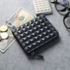 どの角度から見ても美しい、立体的な3Dデザインの牛革を使用したL字ファスナー財布。 見る角度によって変わる表面の陰影が未来的かつ独創的で、 そっと置いてあるだけで、他にはない唯一無二の存在感を放ちます。 どこから見ても美しい立体的な3Dデザインテクスチャの牛革。 陽極と陰極という二つの鏡板の間に革を挟む特殊な工程で作られており、 普通の型押しでは味わえない独特な革の質感とデザインが特徴的です。 普段使いにうれしい小さめサイズ。 軽いので持ち歩きにとても便利です。 開口部はL字型に開いて取り出しやすいL字ファスナー式。 内側は中央の小銭入れが仕切りとなり、2つの収納スペースに分かれており、 カードや紙幣を整理して収納可能。 小銭入れにはマチがあり、大きく開くのでお会計の際などもスムーズになります。 留め具はスナップボタンを使用し、簡単に開け閉めできます。 ファスナーはブラックカラーのファスナーを使用。 カード入れ部分にHALEINEのブランドロゴが入っています。