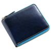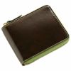 シックな色の牛革に鮮やかなカラーを組み合わせたバイカラーの折り財布。