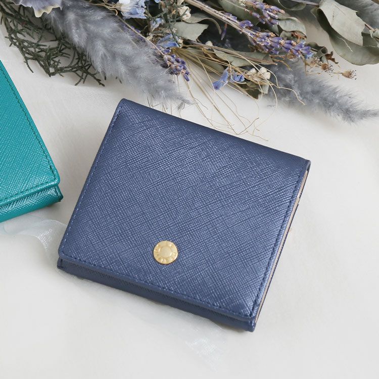 中をあけると大きく開くボックス型コインケースや2つに分かれた紙幣スペースなど、使い勝手に優れた二つ折り財布です。