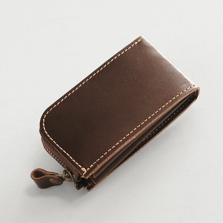 スマートキーケース+αを入れるのに ちょうど良いサイズの コンパクトなスマートキーケースです。 L字ファスナーで開閉し、 蛇腹マチが扇型に大きく開くので 使い易さも抜群の 日本製本革小物です。 栃木レザーは、北米の広大な牧場で 大きく元気に育った牛の原皮を使用しています。 栃木のタンナーの元で、大きく分けても 20にも及ぶ伝統的な技法工程を経ることにより、 日本で最高峰と呼ばれる 「ヌメ革」に仕上がっています。 しっとりと手に吸い付き馴染むような ソフトな肌触りと、本革ならではの 味のある表情・光沢感が魅力の日本製レザーです。 開口部はL字型のファスナーになっており、 ちょうどつかみやすい大きさの ファスナーチャームが付いているので 開閉がとてもスムーズに行えます。 片側は蛇腹マチになっており、 開口部がとても大きく開きます。 内装の可動式の金具に キーリングが2つ付いています。 ブランドネーム[Jamale]の刻印が 内側背面にデザインされています。 重量:約50g