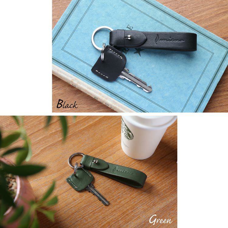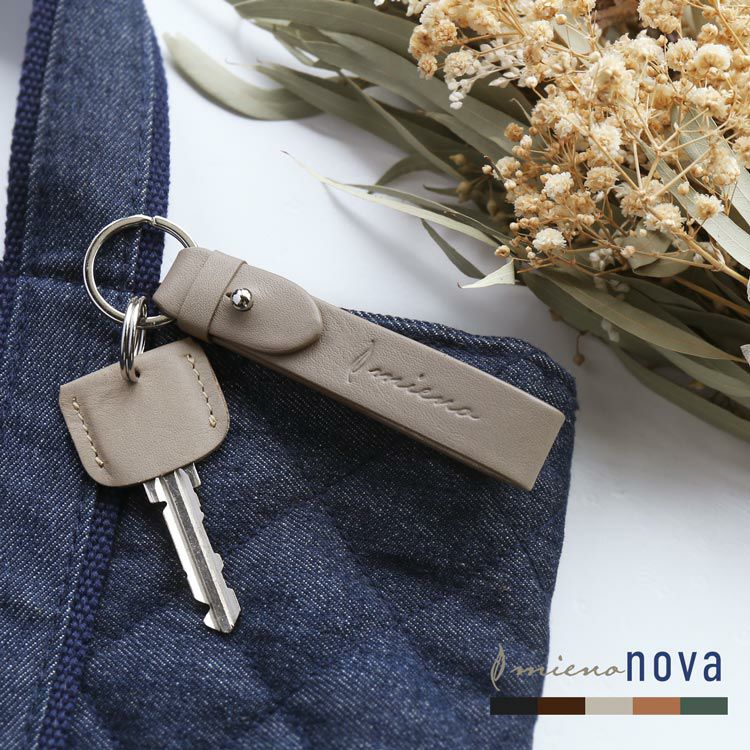 手軽に使える革製品を提案するmienoから、 素材にこだわる大人のための新シリーズ登場。 使っていく人のセンスを格上げしてくれる nova(ノヴァ)レザーキーホルダーをお楽しみください。 鍵を保護するキーカバーが付いた本革キーホルダー。 大きめのストラップで紛失防止にも役立ちます。 毎日使う鍵をおしゃれに持ち運べるアイテムです。 ストラップでバッグに付けて持ち歩くこともできます。 -鍵の付け方- 1.リングからカバーを取り外します。 2.鍵にカバーをつけます。 3.鍵とカバーの穴を合わせ、リングに通します。 4.取り付け完了 くたっとした柔らかな質感が特徴のノヴァレザー。 ナチュラルテイストな風合いで上品な印象。 長く愛用したくなる味わいのある革。