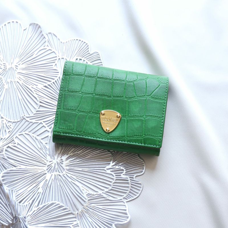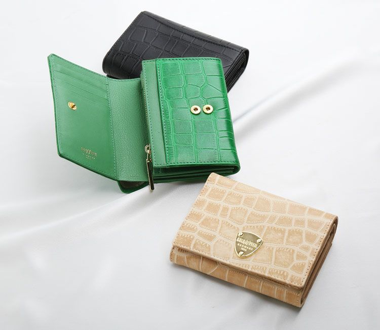 財布 レディース 二つ折り財布 ミディアム財布 レザー クロコ 型押し 牛革 本革 かぶせ 小銭入れ GOLD PFEIL ブランド 折り財布 ウォレット プレゼント ギフト