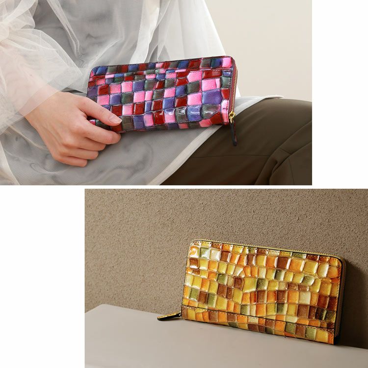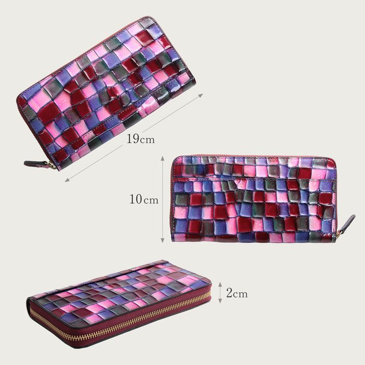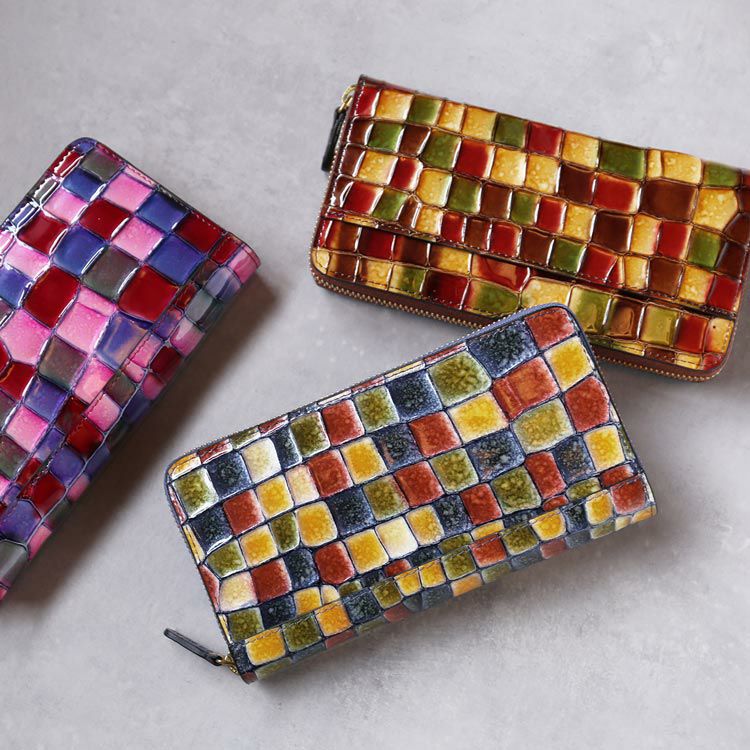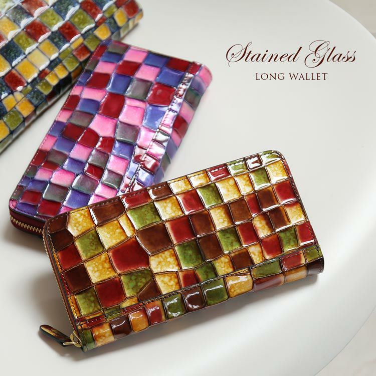 ※キーワード:本革長財布 カラフル ステンドグラス 母の日 長財布 レディース おしゃれ エナメルレザー